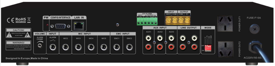 輸出方式:4~16Ω定阻輸出 、70V/100V定壓輸出